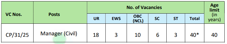 | Designation | Manager | Age Limit | Maximum - 40 Years (Age relaxation is applicable as RITES - The Rail India Technical and Economic Servic) | ||||