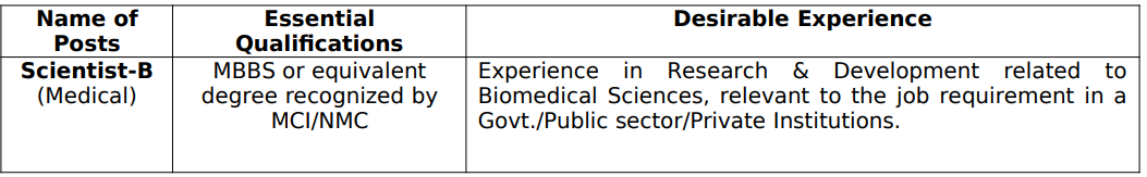 | Designation | Scientist B | Age Limit | Maximum - 35 Years (Age relaxation is applicable as ICMR) | ||||