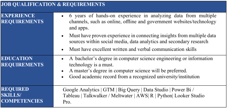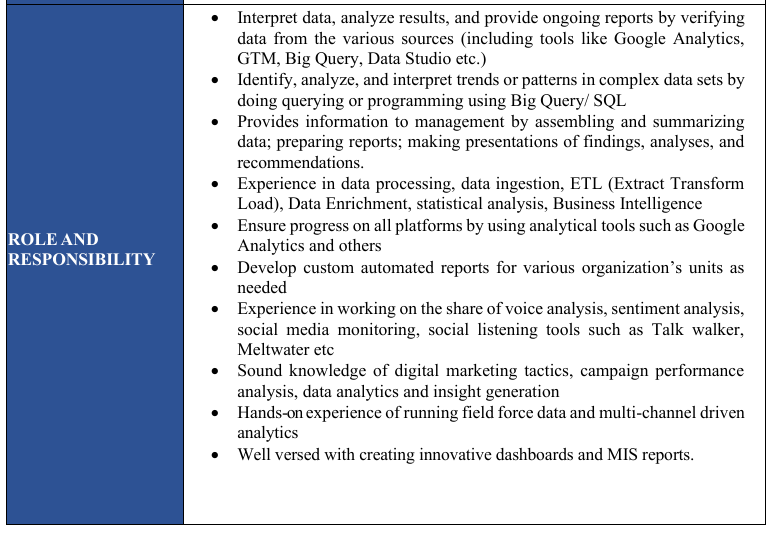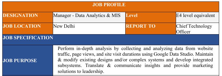 | Designation | Manager - Data Analytics & MIS | Age Limit | Maximum - 50 Years (Age relaxation is applicable as Karmayogi Bharat) | ||||