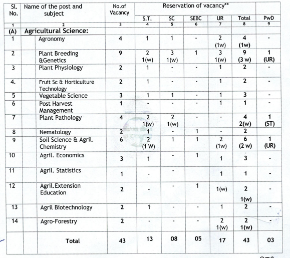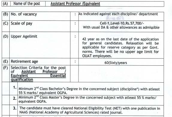 | Designation | Assistant Professor/ Equivalent and Various Posts | Age Limit | Maximum - 42 Years (Age relaxation is applicable as OUAT) | ||||