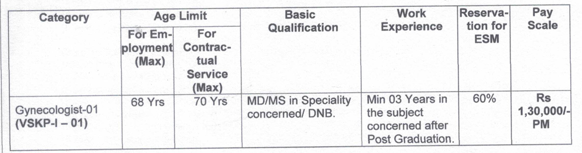 | Designation | Gynecologist | Age Limit | Maximum - 70 Year (Age Relaxation is applicable as per rules of ECHS Visakhapatnam) | ||||