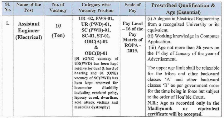 | Designation | Assistant Engineer (Electrical) | Age Limit | Maximum - 36 Year (Age Relaxation is applicable as per rules of WBMSC) | ||||